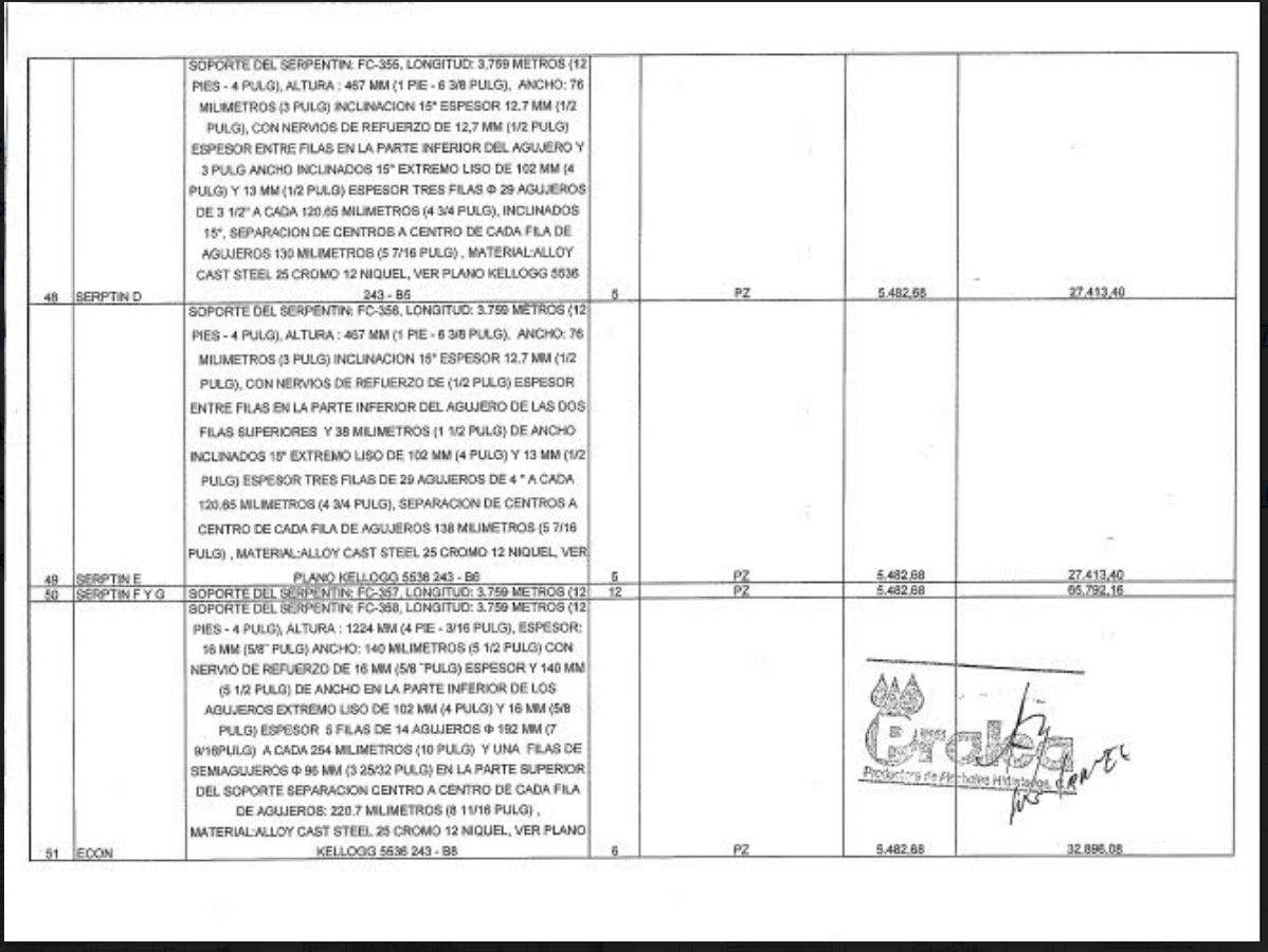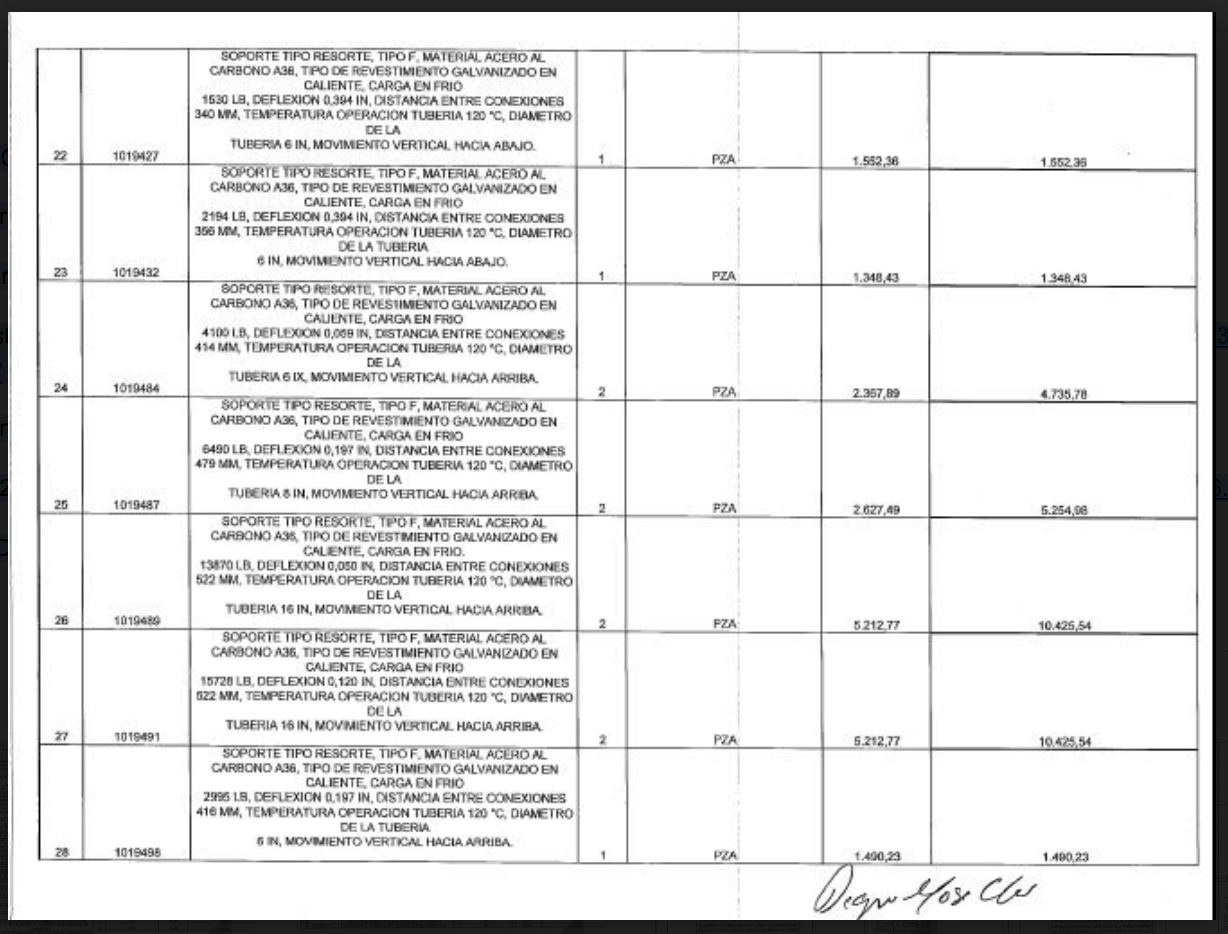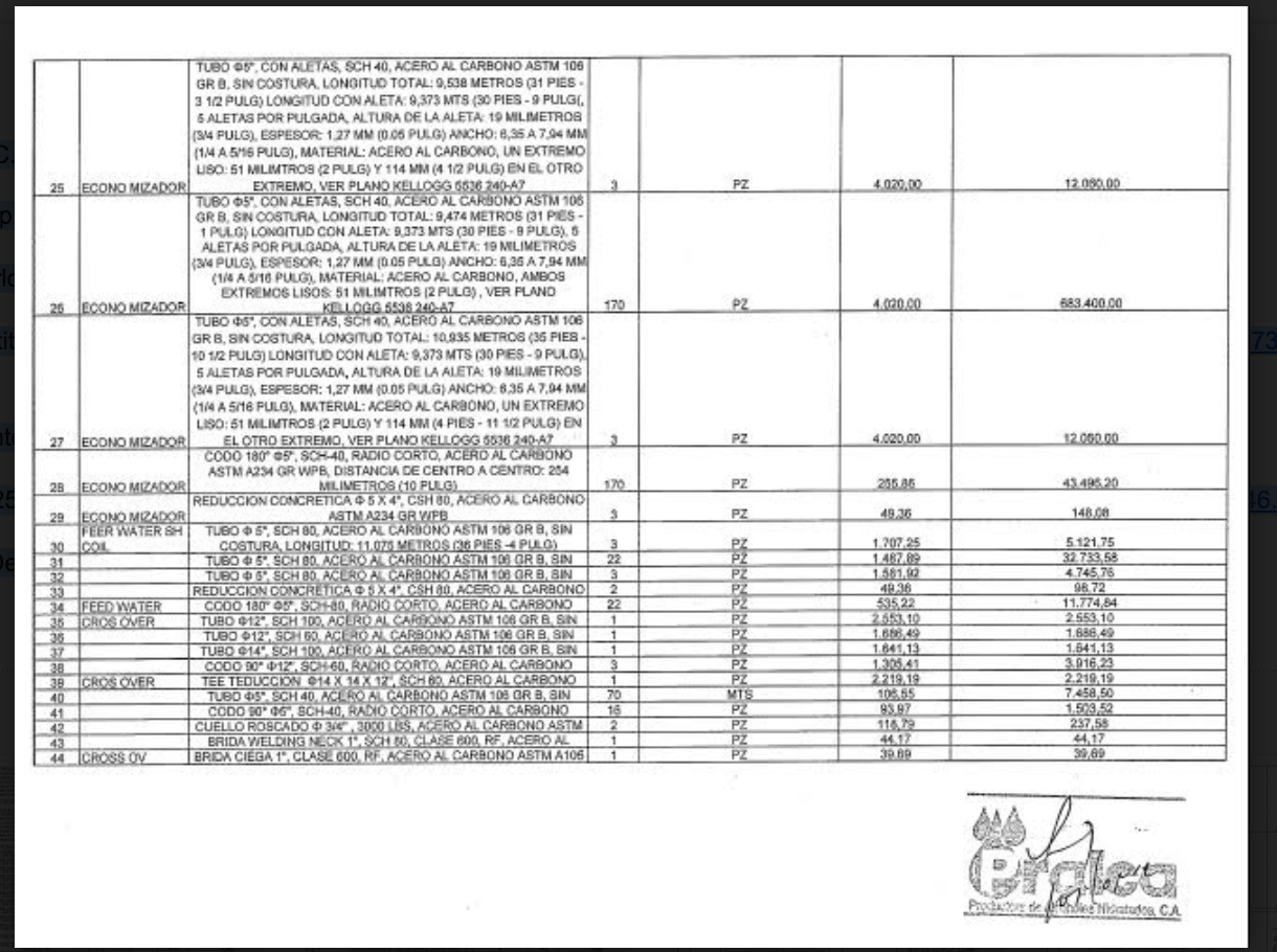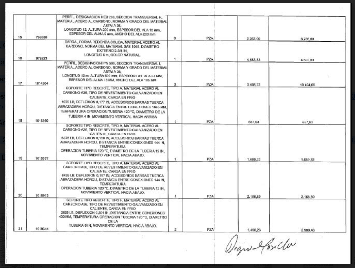 En este pedido se describen los distintos repuestos que requerían para reparar la caldera 103BB de la Planta de olefinas I del Complejo Petroquímico Ana María Campos de Pequiven.
