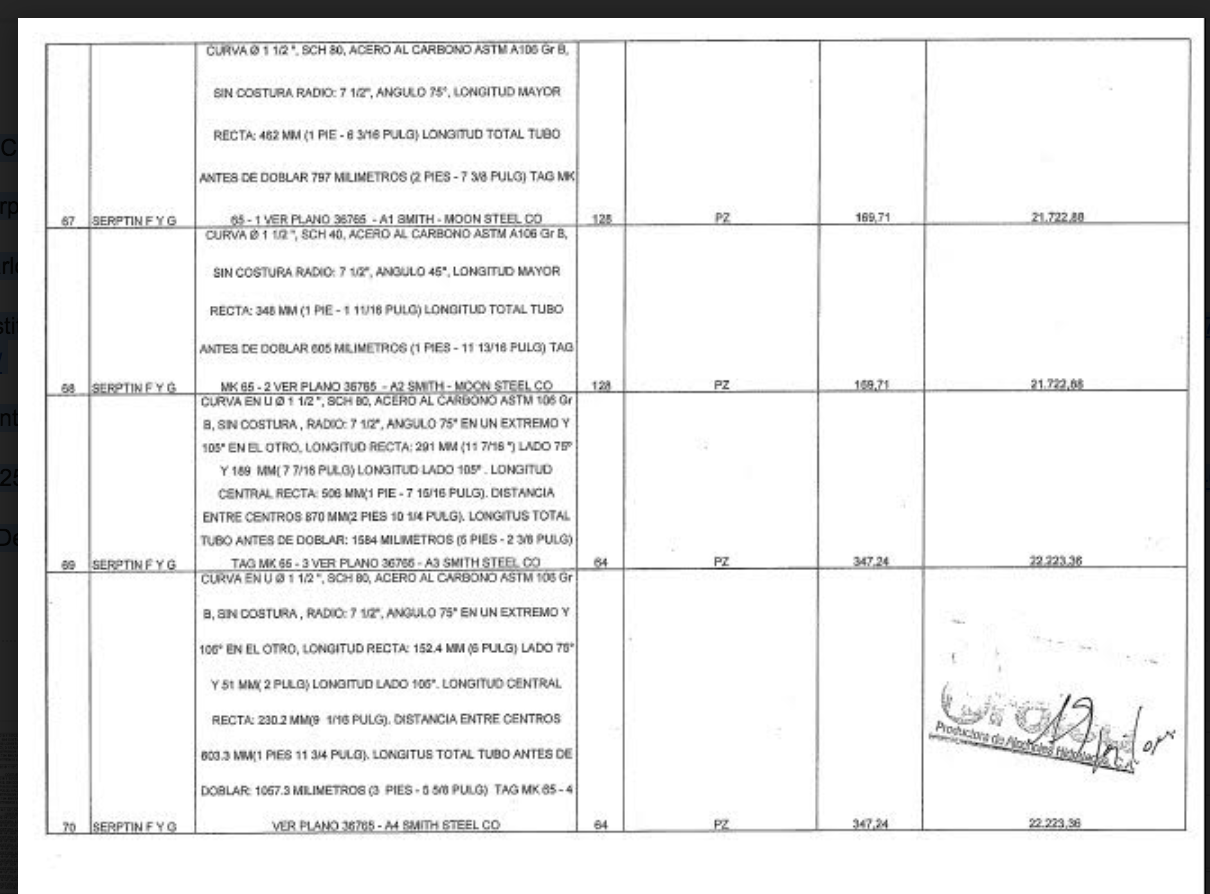 Si en esta orden de compra nos remitimos al producto 84 en la cual se solicita una válvula de compuerta de 10 pulgadas Non Return But Weld SCH, vemos que la misma fue vendida por IPP Petrol Tech Corp en USD 132.696,52, como puede verse a continuación: