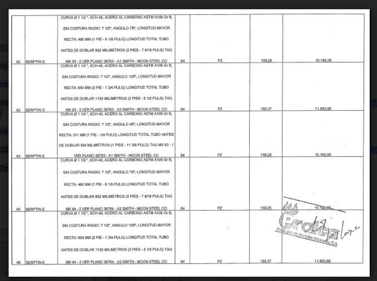 Otra orden de compra identificada con el código PQVEN-00211 llegada a nuestras manos indica que el 3 de junio de 2014, Pralca solicitó a la empresa IPP Petrol Tech Corp., una serie de repuestos igualmente destinados a reparar la caldera 103BB de la planta de olefinas del Complejo Petroquímico Ana María Campos.