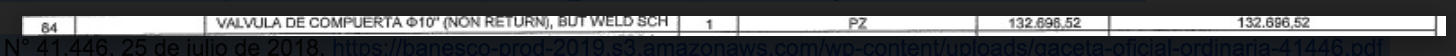 Si en esta orden de compra nos remitimos al producto 84 en la cual se solicita una válvula de compuerta de 10 pulgadas Non Return But Weld SCH, vemos que la misma fue vendida por IPP Petrol Tech Corp en USD 132.696,52, como puede verse a continuación: