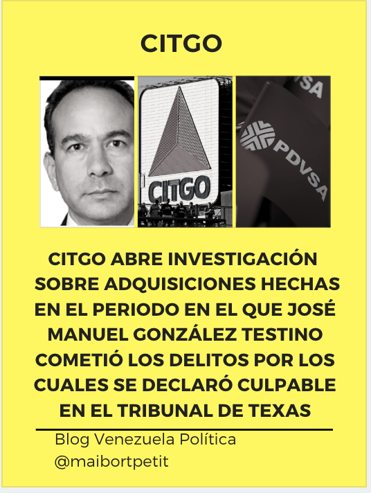 CITGO Petroleum Corporation abrió una investigación sobre las adquisiciones realizadas por esa corporación durante el periodo en el cual se ejecutó el esquema de corrupción operado por el contratista venezolano-americano, José Manuel González Testino, quien se declaró culpable de haber pagado sobornos a empleados de CITGO en Houston, a cambio de obtener jugosos contratos de servicios y logística para sus empresas ubicadas en territorio norteamericano.
