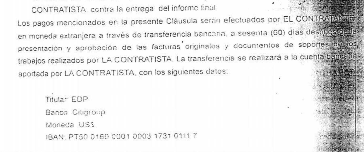 La cláusula quinta del contrato especificaba la inclusión de la “gestión de adquisición de equipos” y se acordó que las partes aceptarían de mutuo acuerdo las cantidades y la forma de pago que la empresa EDP cobrará a Corpoelec.