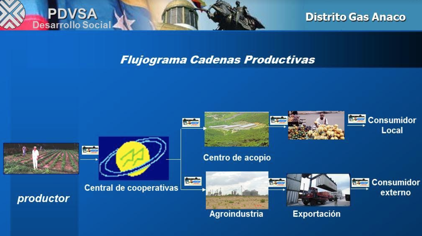 Se indica que dentro del Plan Nacional de Desarrollo Económico y Social de la Nación 2001-2007, el expresidente Hugo Chávez planteó un nuevo rol para PDVSA dirigido a la construcción de un nuevo modelo productivo y económico en el cual se inscribía el Proyecto núcleo de desarrollo endógeno para el sector agrícola, agroindustrial y artesanal “Ciudad Sáenz” a ejecutarse en el Distrito Anaco del estado Anzoátegui. Este proyecto se llevaría a cabo en cuatro fases: I) Primer contacto motivacional; I) Sensibilización y capacitación; III) Acompañamiento cooperativista; y IV) Formación técnica e integracionista.