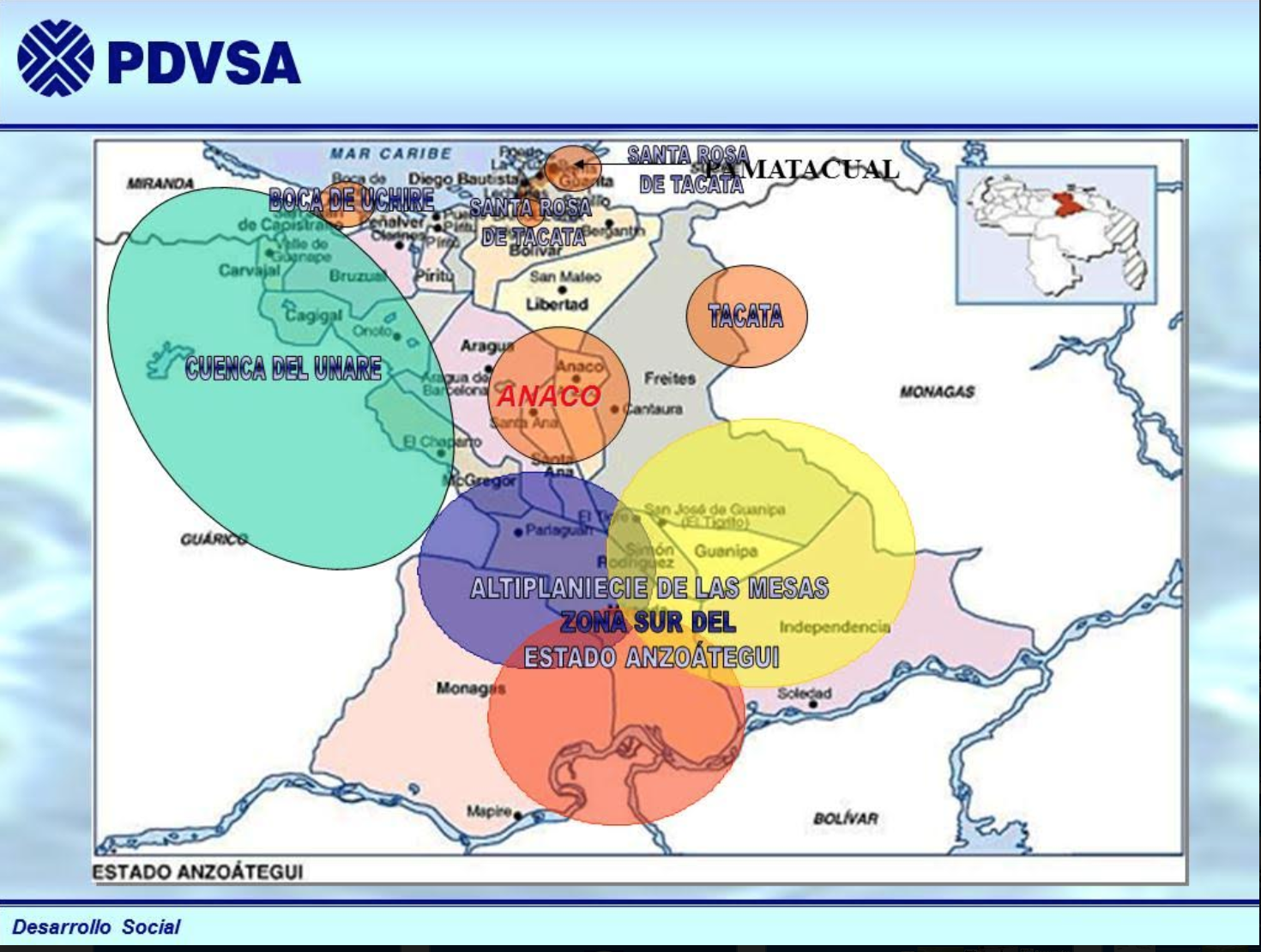El Ministerio de Energía y Minas y PDVSA Desarrollo Social elaboró en 2005 el Proyecto Núcleo de Desarrollo Endógeno para el Sector Agrícola y Agroindustrial “Santa Rosa” el cual estaba planificado para desarrollarse en el entorno de las áreas operacionales del Distrito Gas Anaco del Estado Anzoátegui, sustentado en los lineamientos generales del Plan Nacional de Desarrollo Económico y Social 2001-2007. Igualmente, apuntaba a constituirse como una nueva etapa del proceso revolucionario presentado por el gobierno nacional, donde se plantea alcanzar los cambios estructurales que requiere el país e insertarlo dentro de un Modelo Económico Social Sustentable y Sostenible.