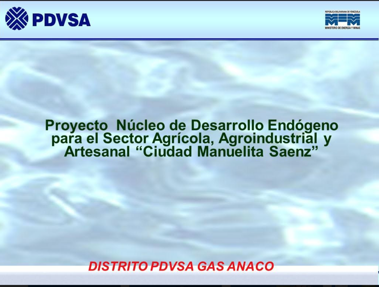 El Ministerio de Energía y Minas y PDVSA ejecutaron también el Proyecto núcleo de desarrollo endógeno para el sector agrícola, agroindustrial y artesanal “Ciudad Manuelita Sáenz” en el Distrito PDVSA Gas Anaco.