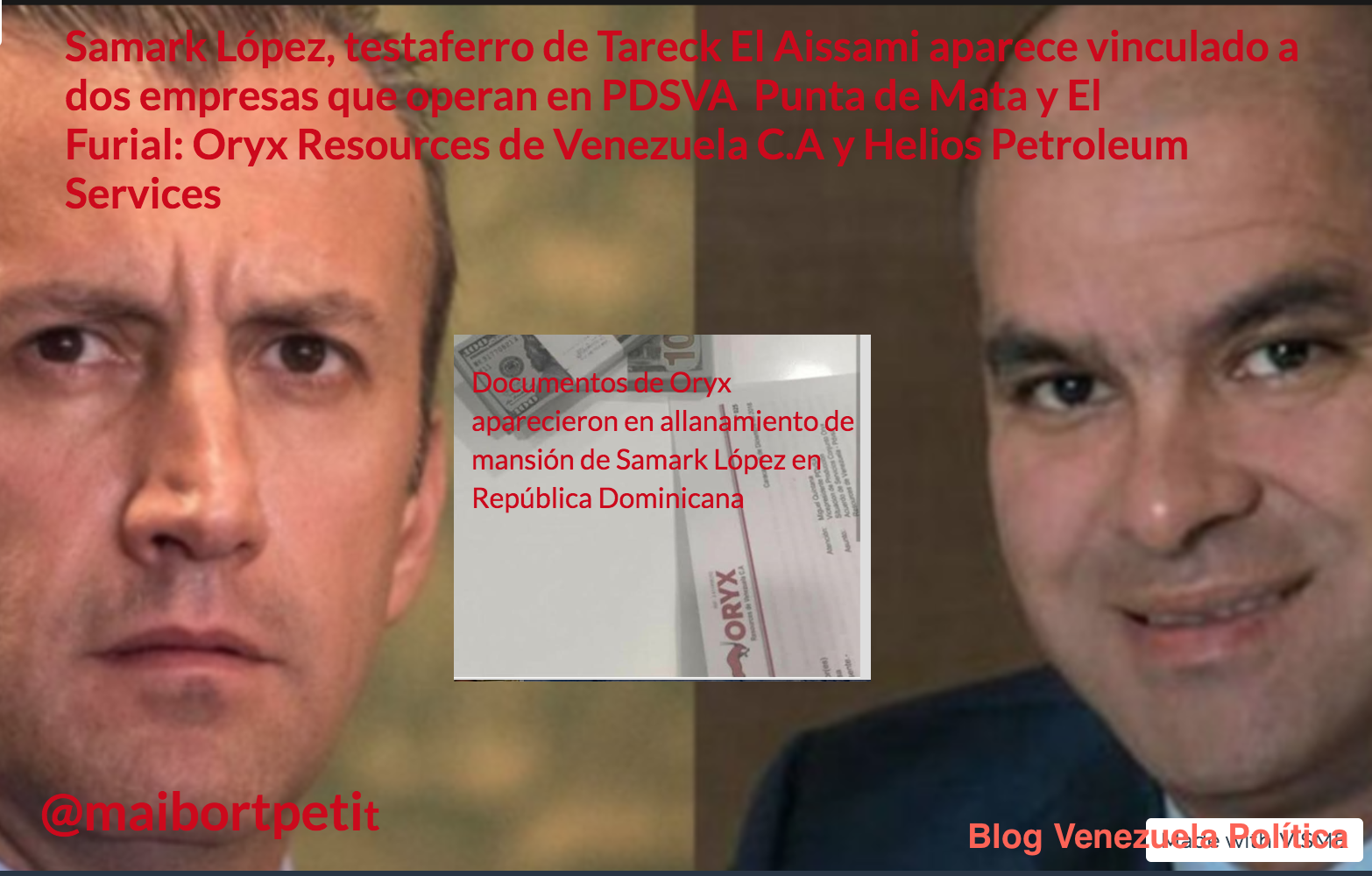 Dos empresas vinculadas a Samark López Bello, Oryx Resources de Venezuela C.A y Helios Petroleum Services, forman parte del acuerdo de servicio conjunto por USD 430 millones de dólares que Petróleos de Venezuela firmó con siete compañías para aumentar su producción de petróleo en 641,000 b/d en agosto de 2018. Fuentes internas confirman que las dos firmas ligadas al presunto testaferro del ex vicepresidente Tareck El Aissami, operan en PDVSA División Punta de Mata en el estado Monagas, Venezuela.