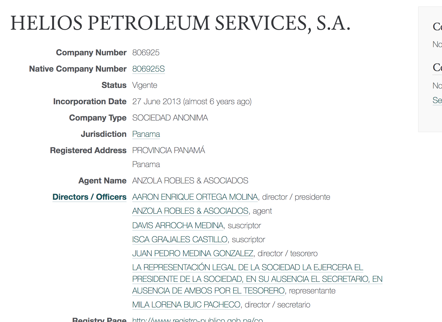 Una segunda fima Helios Petroleum Services S.A está registrada en Panamá bajo el número 806925 y el NCN 806925S. Fue creada el 27 de junio de 2013.(9)