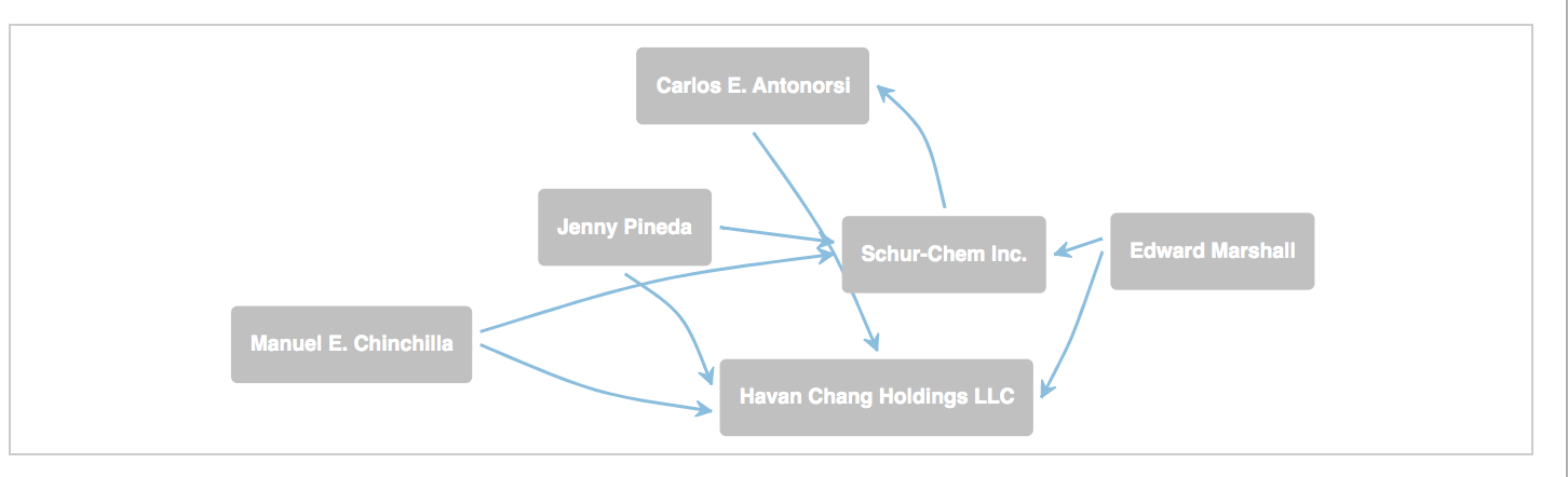 Havan Chang Holdings LLC fue registrada por Manuel E. Chinchilla bajo el registro L11000042283 el 8 de abril de 2011, y cerrada el 13 de enero de 2014. La firma usó la dirección 200 S. Biscayne Blvd Suite 2790, Miami, FL 33131 BR y el 16 de abril de 2013 cambió la dirección a 5805 Blue Lagoon Drive Suite #200, Miami, FL 33126.
