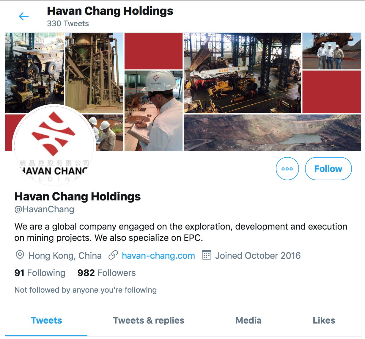 El portal Manta dice que Havan Chang Holdings LLC está ubicada en 1535 North Park Drive 101 Weston, FL 33326, fue establecida en 2011, tiene ganancias anuales de US D1.100.000 y tienen dos empleados.(2)