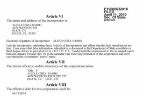 Se trata de una empresa actualmente activa cuyo agente registrador es FRP Accounting & Taxes Inc., que reporta como domicilio el 11981 SW 144 CT, Suite 109, Miami, FL 33186.
