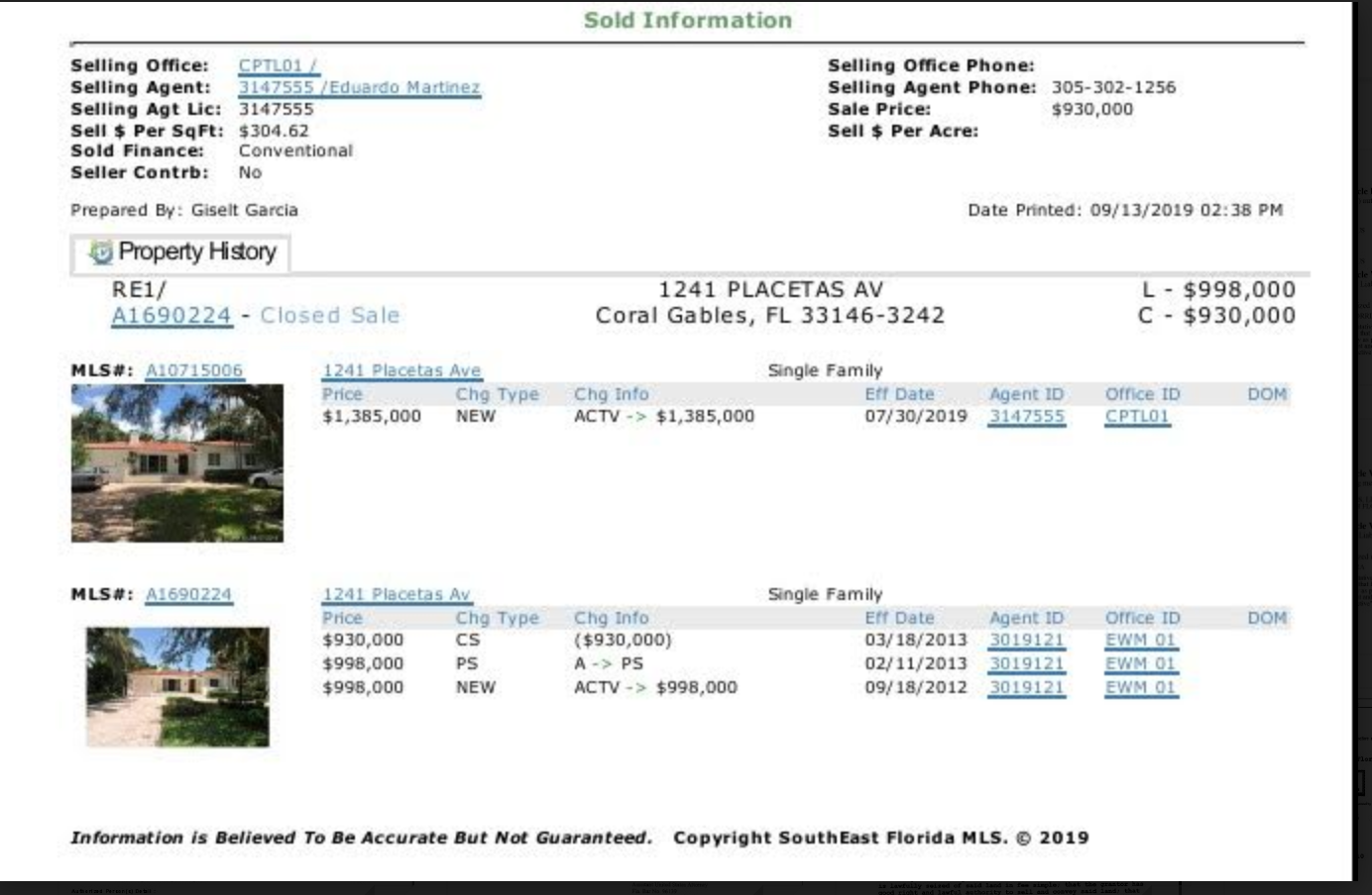 El inmueble había sido domicilio de otra compañía, a saber, Papi Grill LLC[8], la cual según el portal Sunbiz, es una empresa registrada en el estado de la Florida el 23 de noviembre de 2013 bajo el número L15000197275, cuyo estatus actual es inactivo al haberse disuelto voluntariamente el 30 de junio de 2016[9]. Su dirección era el 1241 Pacetas Ave, Coral Gables 33146 que igualmente se reportó como domicilio del agente registrador y directivos, además de indicarse como dirección postal.
