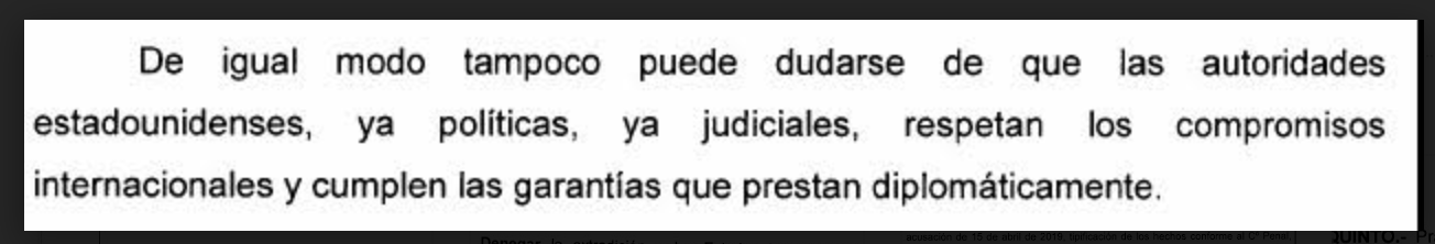 Igualmente, el máximo órgano de justicia español adujo para justificar su decisión, que la solicitud estadounidense estaba sustentada en razones de tipo político.
