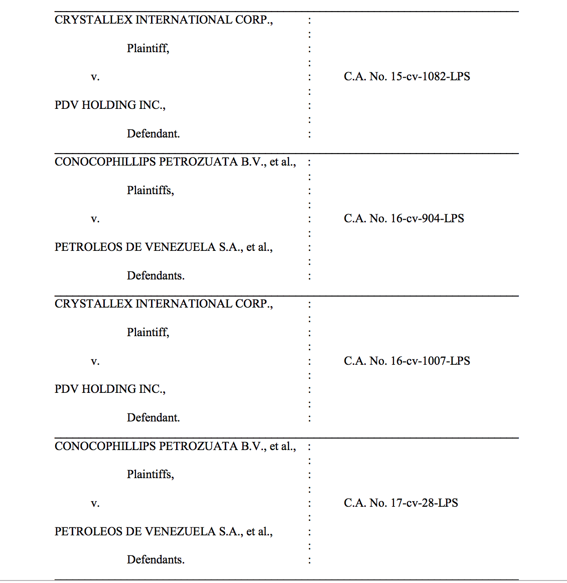 La orden del juez Leonard Stark señala que otras empresas que buscan unirse a la demanda para vender las acciones de CITGO para cobrar sus deudas con la república tienen que probar que Venezuela usó a sus compañías petroleras como un alter ego del gobierno, en lugar de confiar en ese hallazgo del litigio anterior de la empresa canadiense Crystallex, quien logró que el tribunal aceptara la tesis del alter ego.
