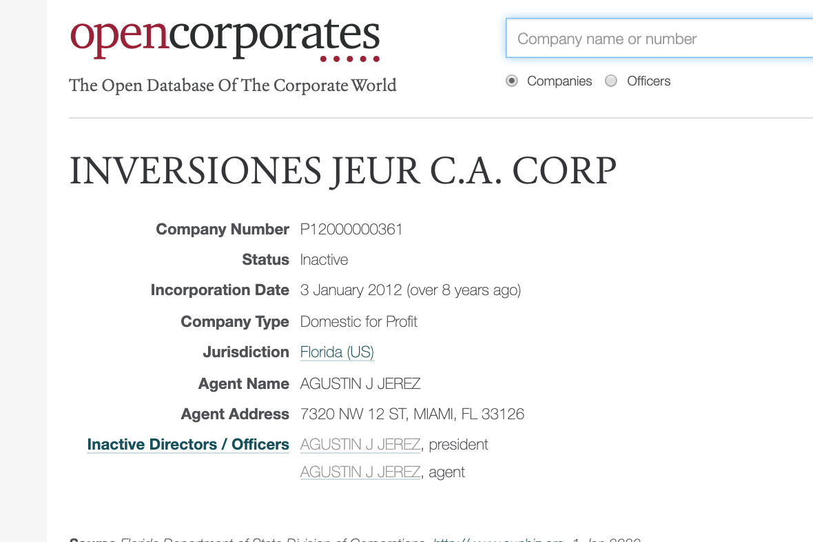 Leonardo Santilli es el dueño de las empresas venezolana Constructora Cosaco Co. y PLD Inversiones C.A. y las firmas estadounidenses SGP Group Corp., (registrada en el Sur de Miami) y A&M Support Inc. (registrada en en Weston, Florida).