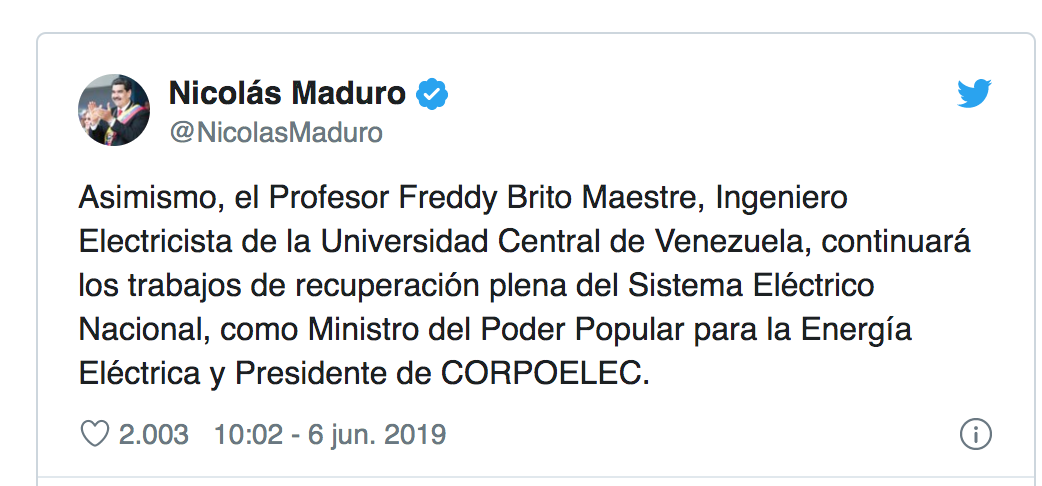 Y nosotros los zulianos pasando necesidades basicas en todos los aspectos por lo menos en el sector delicias norte de Maracaibo 6 horas sin fluido eléctrico y eso es a diario a veces 12 horas corruptos gobierno